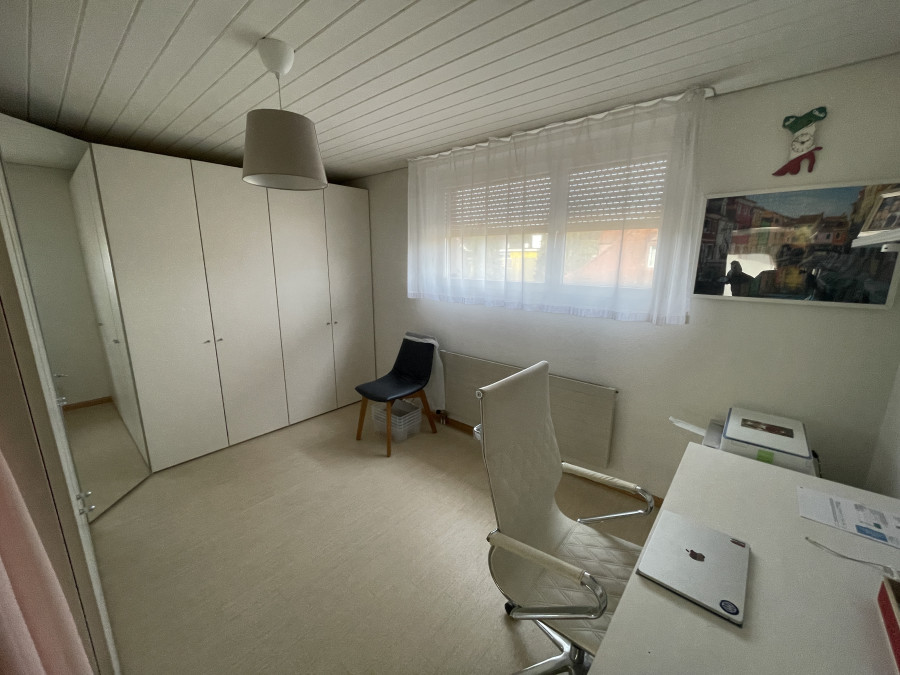Das Wohnzimmer mit Parkettboden, Cheminée und Zugang zur sonnigen Terrasse schafft ein warmes, offenes Wohngefühl. Drei weitere Zimmer bieten vielseitige Nutzungsmöglichkeiten – ideal für Familien, Homeoffice oder Gäste.