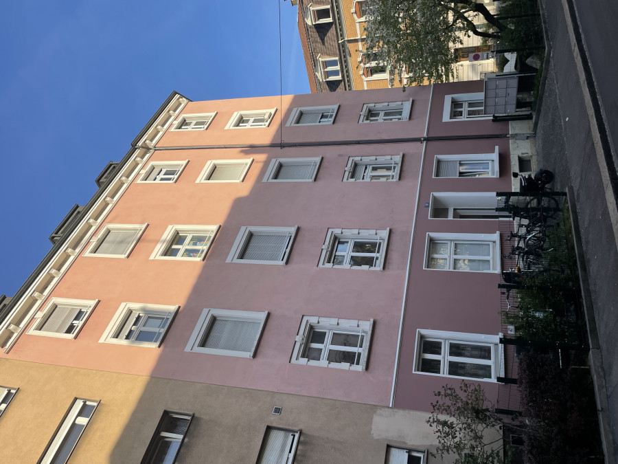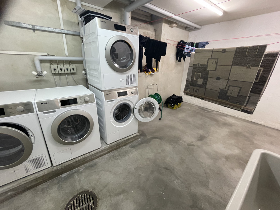 Beidseitig angebaute, sechsgeschossige Liegenschaft (UG – DG) ohne Lift. Zu jeder Wohnung gehört ein Kellerabteil im Untergeschoss. Eine Wachküche mit 2 x WM/Tumber ist ebenfalls im Kellergeschoss für die Mieterschaft vorhanden. Ein Fahrradabstellplatz befindet sich im Vorgarten der Liegenschaft.